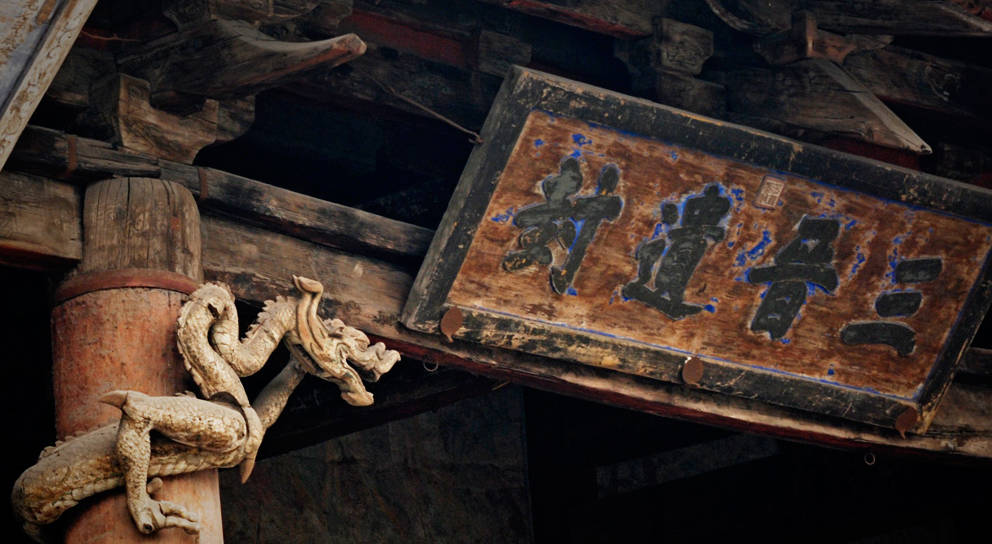 太原,晋祠水镜台。这是一个唱戏的舞台上的牌匾,原件。听戏,在古代是重要的娱乐方式