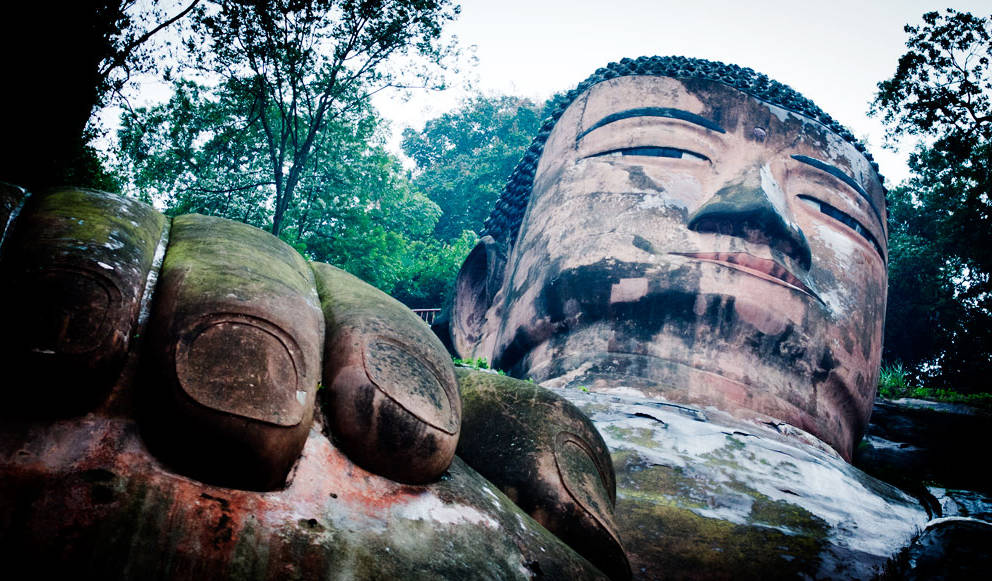 佛头上设计有排水槽,避免下雨时,大佛泪流满面