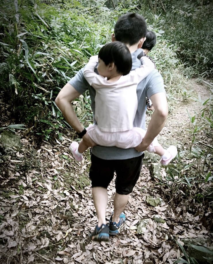 下山时,由于都是杂草丛生的小路,而且小东西也不肯走了,于是我就当作去健身了。