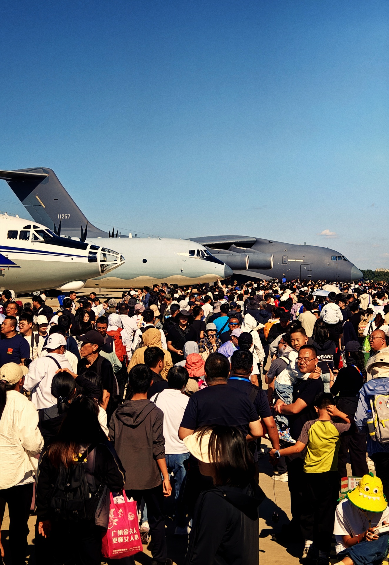 J10作为今年实战荣归的机型,C位妥妥的。J16,帅气高昂的脑袋,吸引着无数路人侧目、驻足。而王牌J20,高峰时,你是靠近不了半步。我很期待的J35,这次没有登场,这是想把机会留给海军吗?我特别想上舰参拜。轰6K,六爷,稳稳的盘在那儿,看着你心里就踏实。而胖妞Y20,静静地坐在展位的最远端,但登机参观的队伍却已然排到了另一端……
