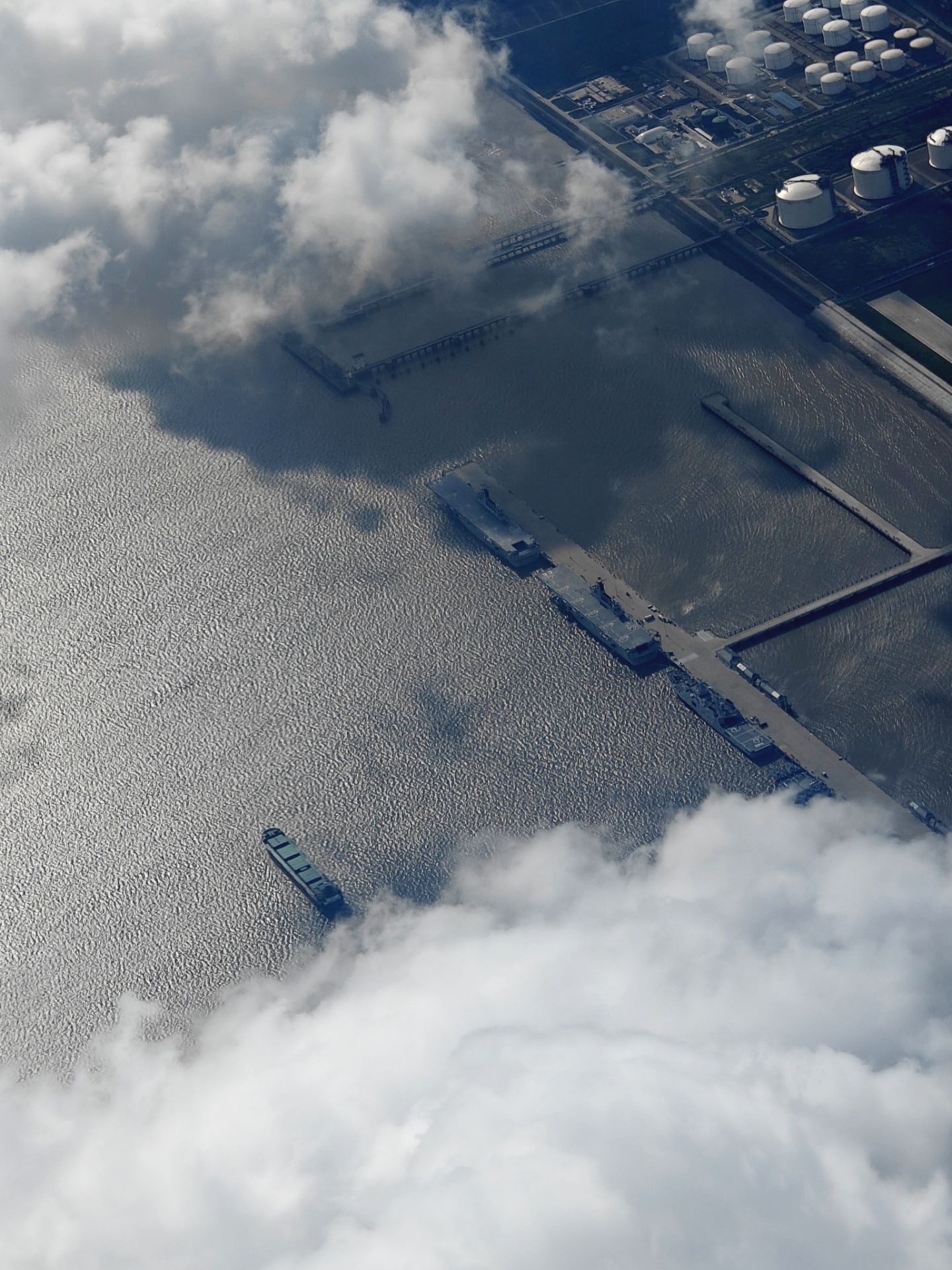 当天清晨出发时,霞光非常美丽。8:30分的春秋航空也是满员准时启程。爬升阶段看到了两艘登陆舰。