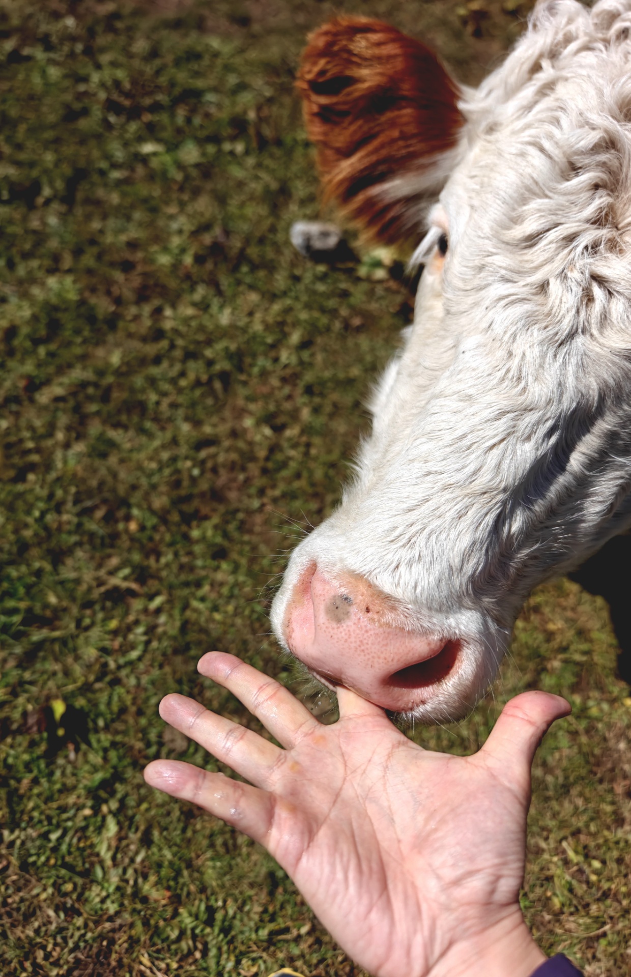 山顶处还有一块平整的草场,牛儿们在这欢度午后悠闲时光。你可以在这里试试喂牛,但记得最好挑选小牛。