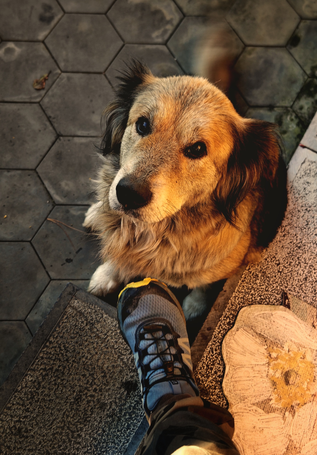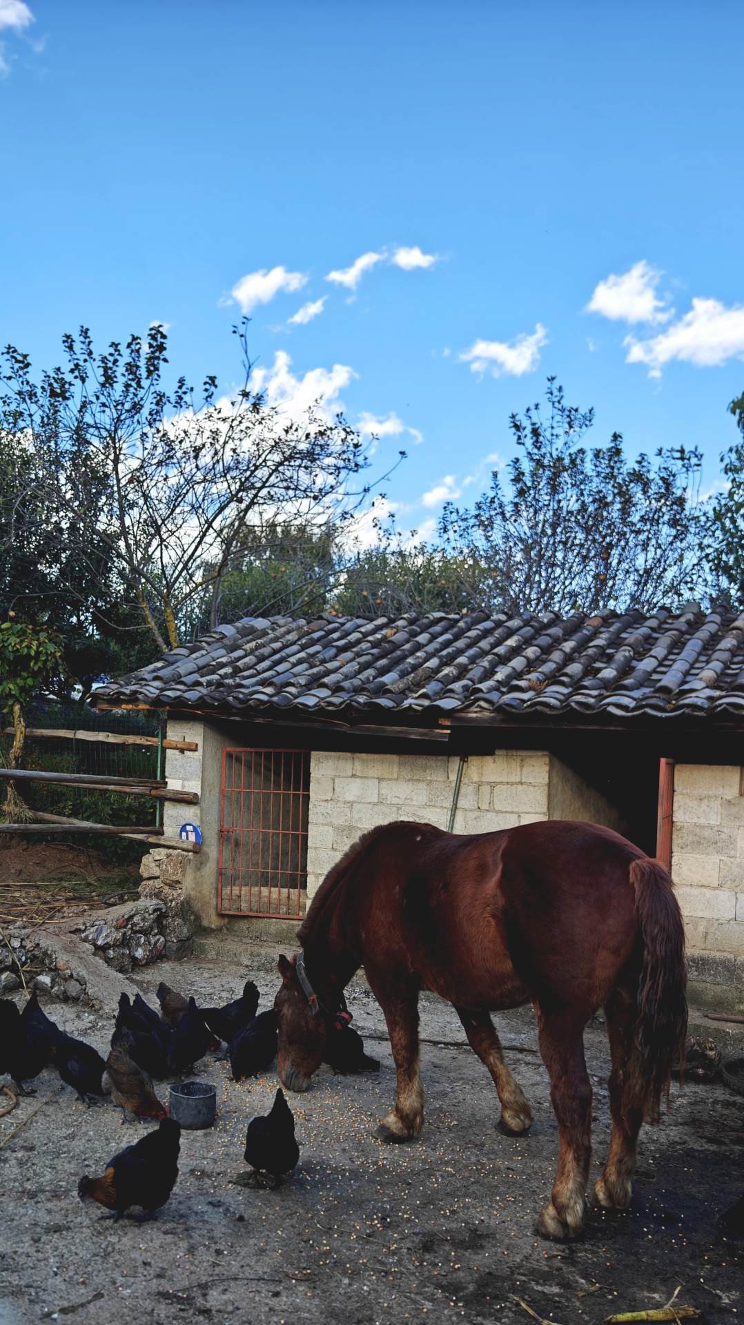 这家民宿是老板娘自己家,打理的不错,院落也很漂亮。家门口还可以停4-5辆车,家里有两条大犬、一只黑山羊、一匹马和一窝鸡。