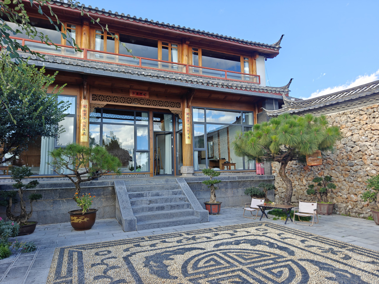 一路望着雪山向北前进。9点的玉湖村尚未开始营业,便一路开进了停车场,下车先去预先选好的民宿“山水谈”看看,顺带砍价。